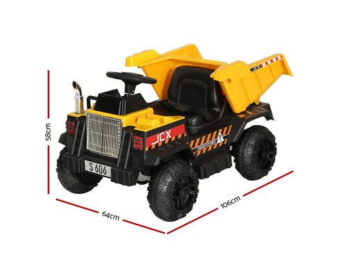 This Construction Ride-on Toys collection extends further with our bright yellow, realistic yet battery-operated Ride-on Tip truck that is best for transforming any sandpit into a construction site. Powered by a 50W twin motor, including a tall backrest, safety belt, forward/reverse switch, and an accelerator pedal, this Rode on Toy promises safety with up to two hours of exhilarated fun. It even has practica; tipper controls to operate the open-box bed so that sand can be transported to and deposited at the construction site.