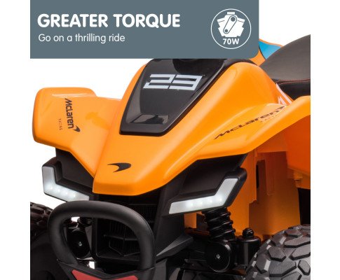 If your little one has a calling for adventure, then wait till they see the new McLaren MCL35 Ride On Car! This beautiful McLaren-licensed toy car features an off-road ATV design and sleek detailing. It also includes working LED lights for safe riding at night.