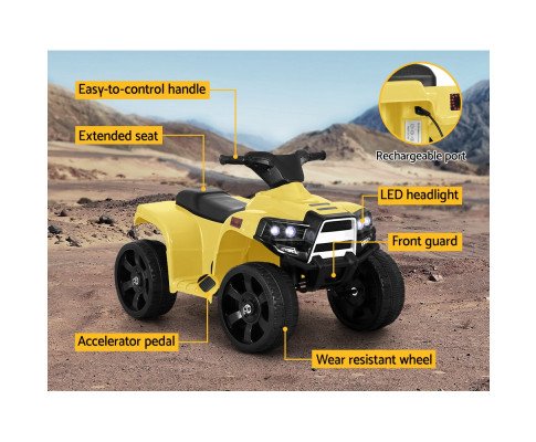 Let your little one experience the excitement of driving a Rigo ATV The acceleration pedals to control the forward and reverse operation movement give your child control and a realistic driving experience. It comes with some cool entertaining features that will allow your child to have hours of fun. Anti-slip tyres also ensure safety while your children are exploring the area in a fun way. Get the Rigo ATV today and watch your child’s imagination run wild!
