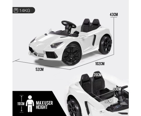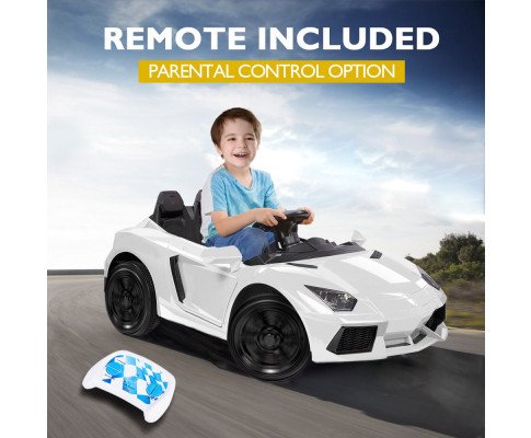 ROVO KIDS Lamborghini Inspired Ride-On Car, Remote Control, Battery Charger, White