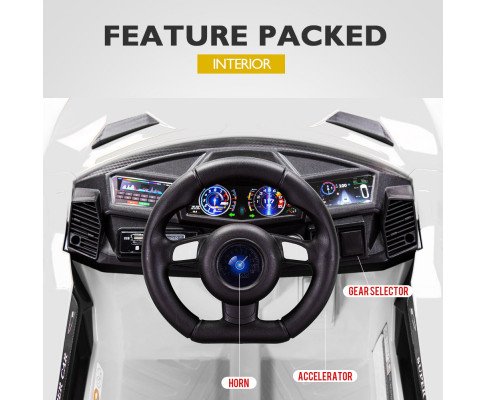 This top quality ride-on has absolutely everything a child could want, combined with optimal safety features, it includes immediate parental lockout via the remote control. The Lamborghini boasts an incredible array of features including realistic engine sounds, horn, headlights and electronic brake. It also has 2 scissor doors that can be opened for added convenience.